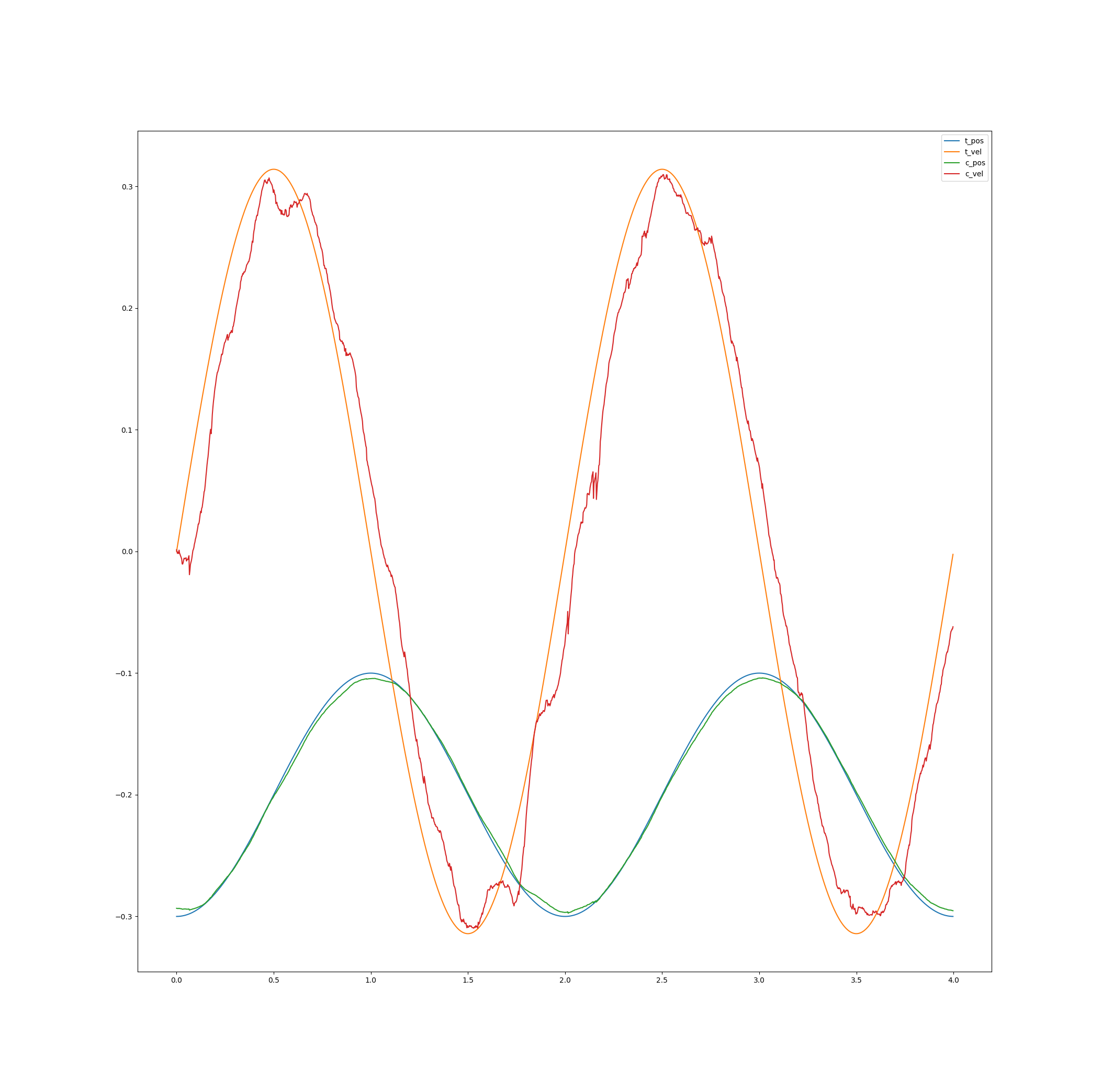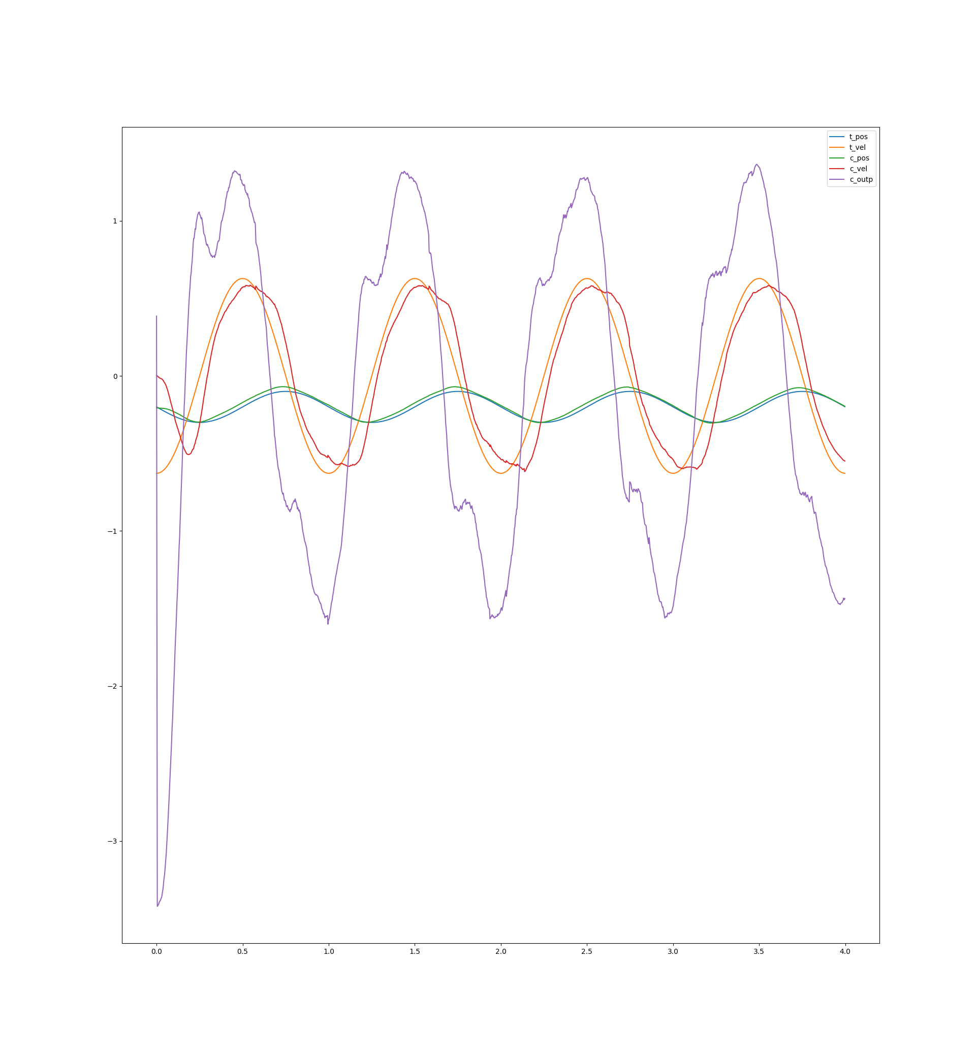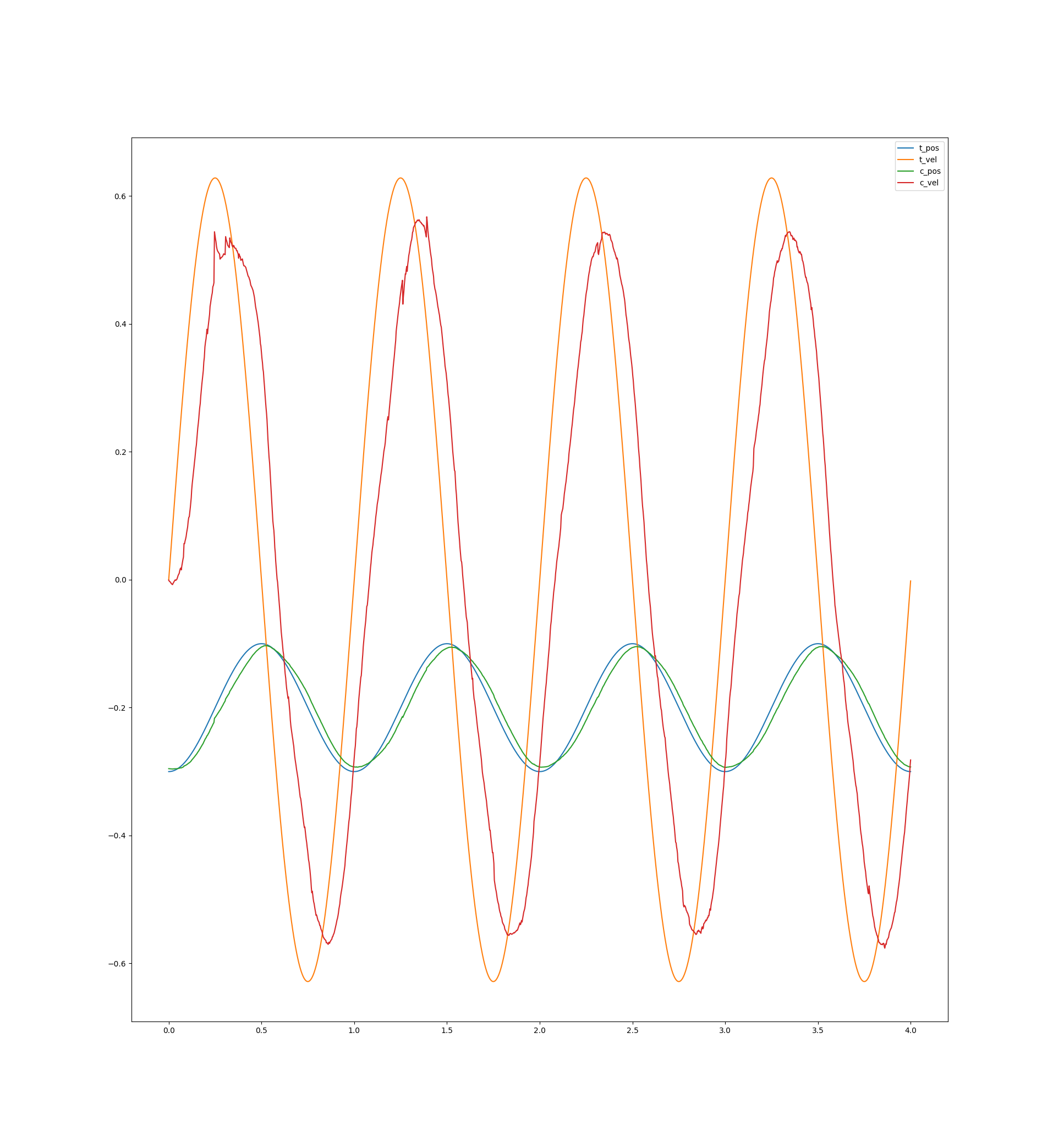 I’ve built a robot dog that utilizes the actuators and did some comparisons of the control behavior. The test was a sinusoidal movement of one of the dog’s knees with a velocity maximum of almost at the velocity limit. Here are the results: